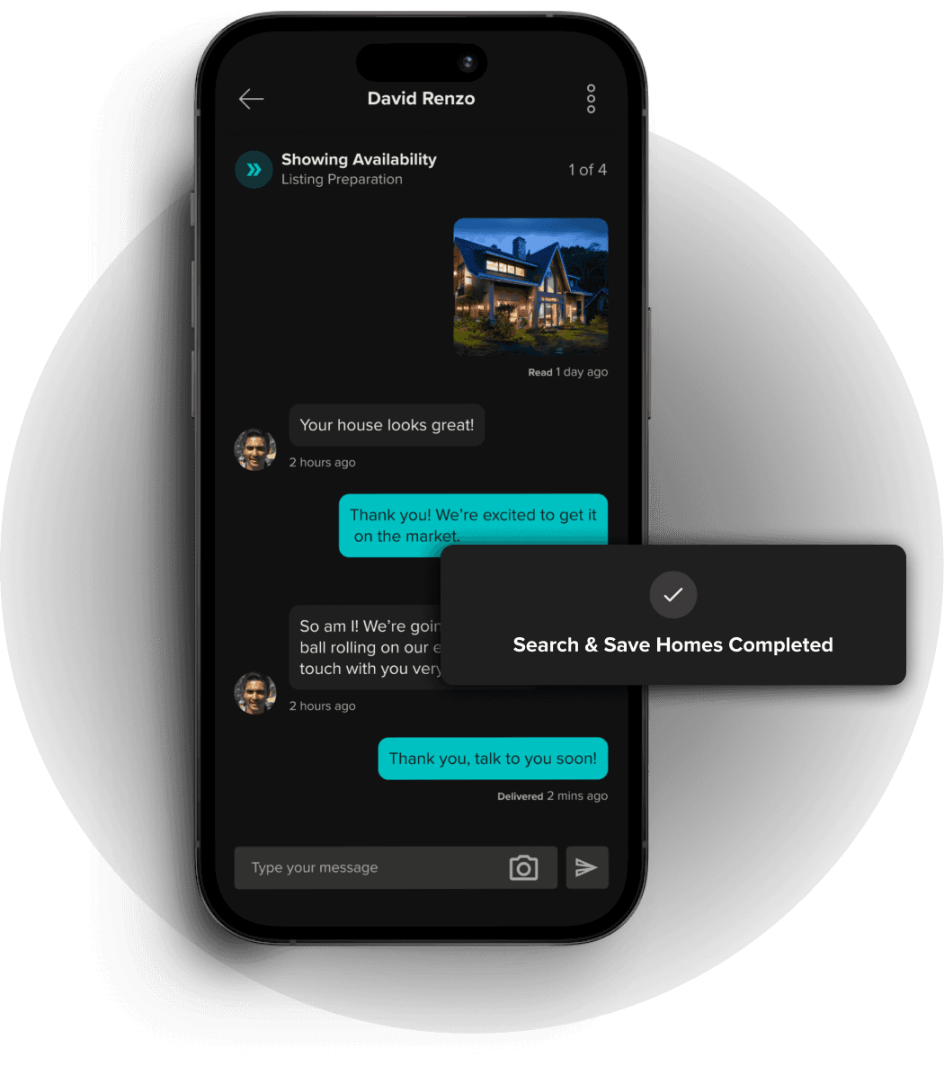 Stay connected and collaborate instantly with your agent, lender, and title company.